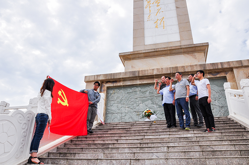 黨員代表為烈士敬獻了花籃,集體重溫了入黨誓詞,并在橫幅上鄭重的簽上了自己的名字。沿著陵園,大家不時駐足觀看,墓間蒼勁常青的高大松柏莊嚴肅穆,仿佛在守衛著長眠于此的革命烈士,守望著那一段浴血奮戰的悲壯歷史。