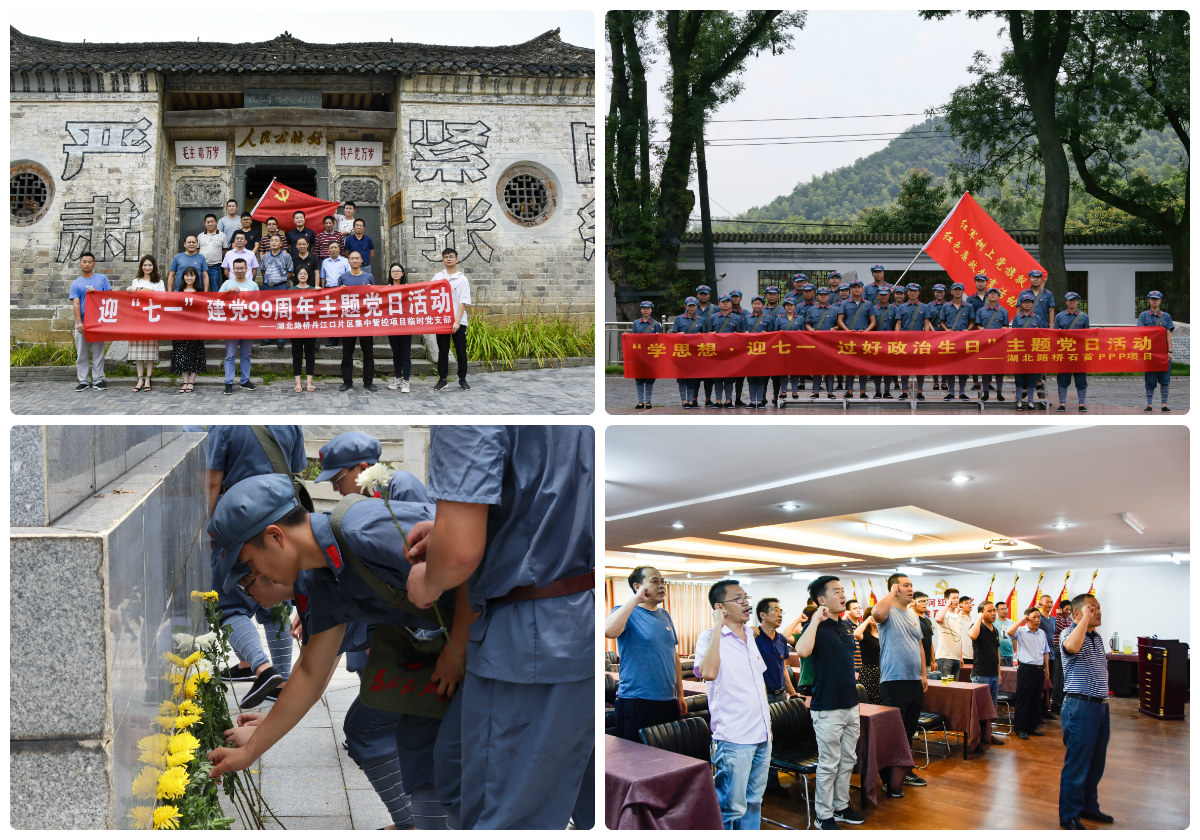 七一前夕,橋隧公司所屬棗潛四標、丹江口片區、鄖西PPP項目、白洋長江大橋、棋盤洲長江大橋、武穴長江大橋、石首PPP項目、枝江縣鄉等級公路改造項目等7個項目臨時黨支部,以豐富新穎的活動形式紀念黨的生日,引導黨員干部傳承長征精神、堅定理想信念、補足精神“鈣質”,激發全體黨員干事創業的熱情和愛國主義情懷,進一步提升支部攻堅克難的凝聚力和戰斗力。