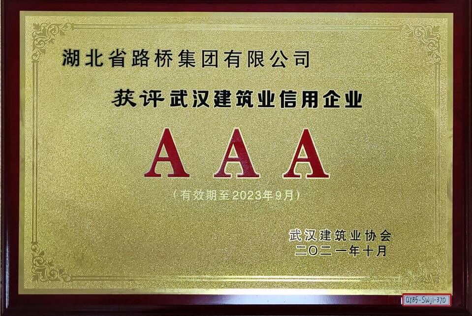 2021年武漢建筑業信用企業等級證書(信用等級:AAA)