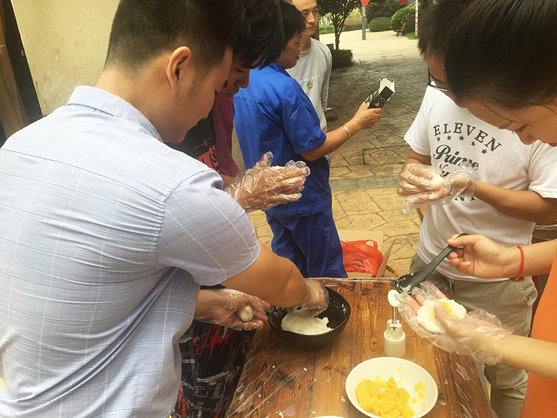 品嘗月餅也是中秋節的習俗之一,如果能品嘗自己親手制作的月餅,這個中秋節肯定更加難忘?;顒拥诙椌褪侵谱鞅ぴ嘛?,大家一邊自己動手和冰皮、包餡、壓花定型,一邊相互交流著關于中秋和月餅的故事。看似簡單的制作過程,要做出漂亮的月餅也讓大家費了不少心思。有些止不住饞的小伙伴,還沒等做完就迫不及待的嘗鮮了,也有些舍不得吃的,說要帶回家與家人分享。