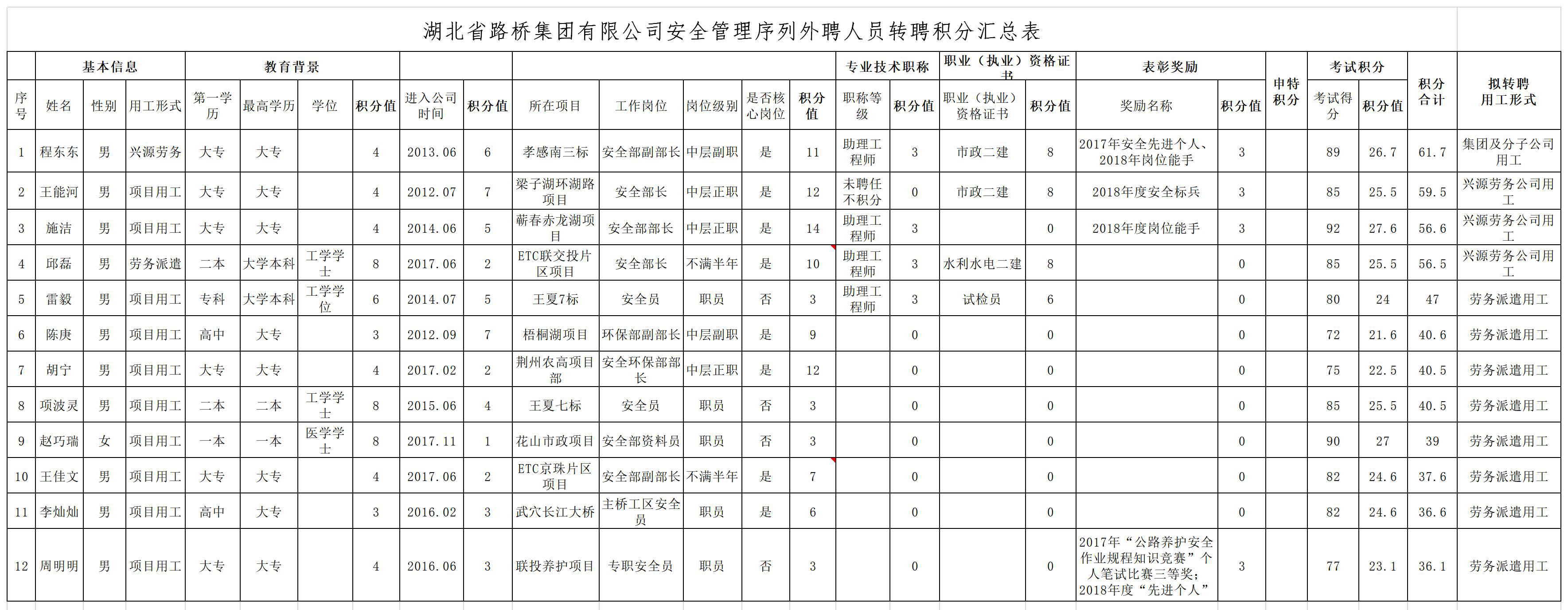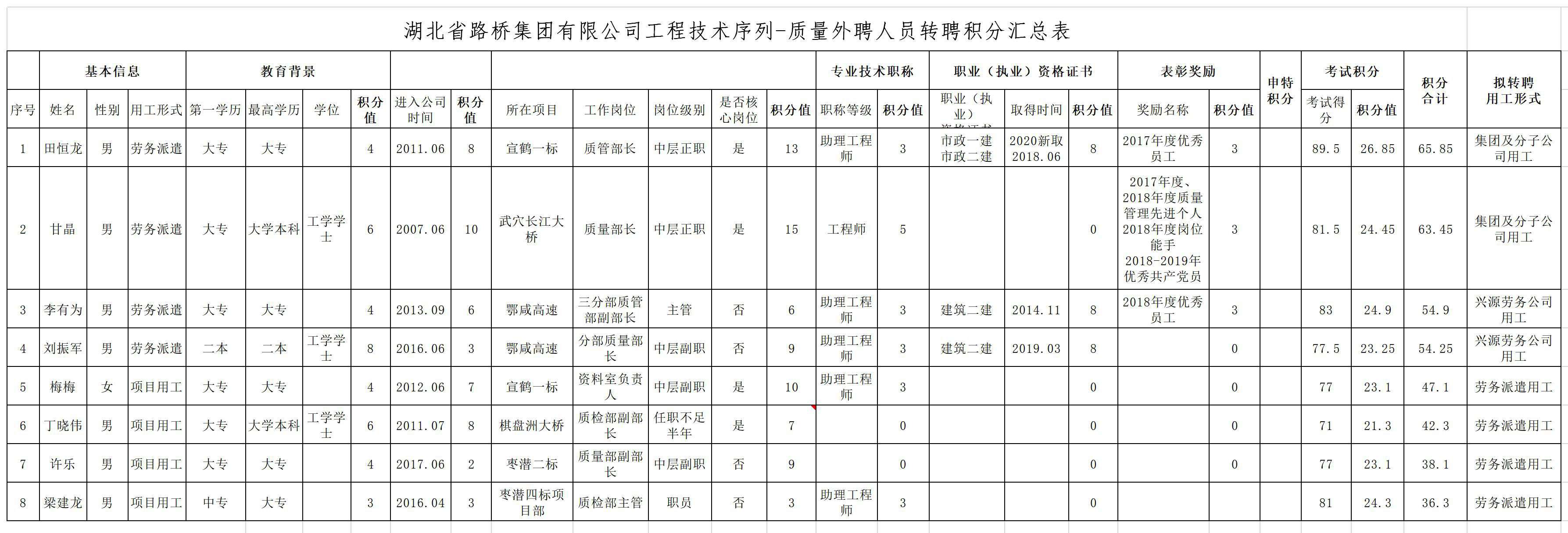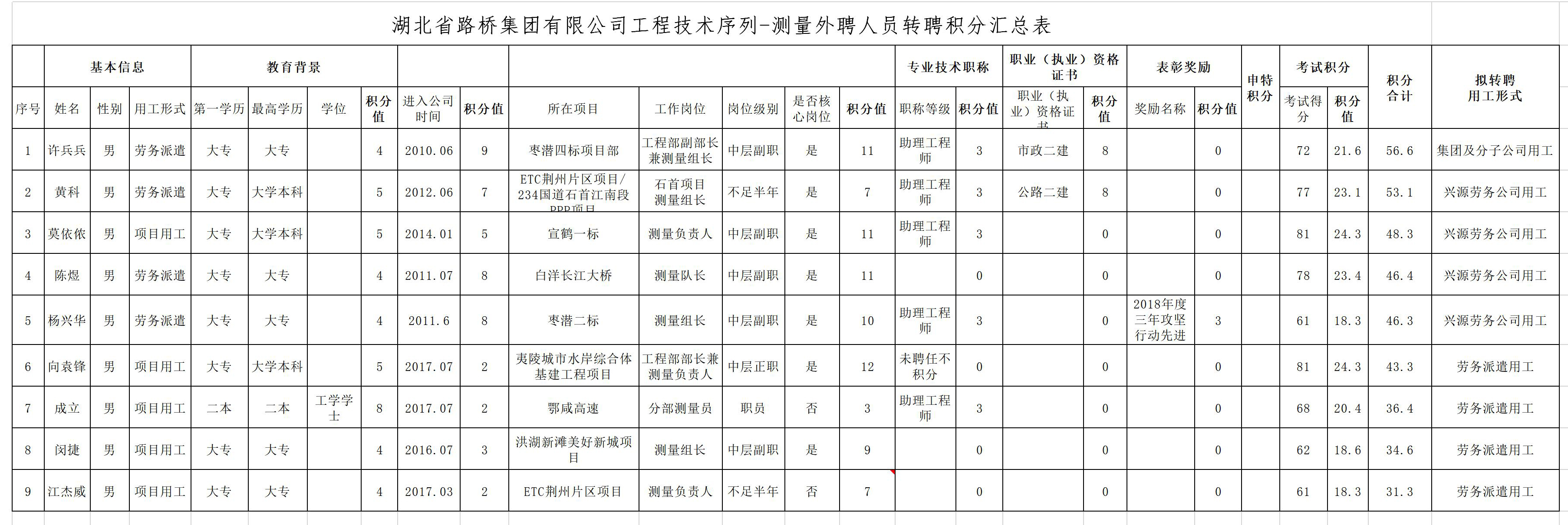 湖北省路橋集團有限公司2019年擬轉聘人員公示