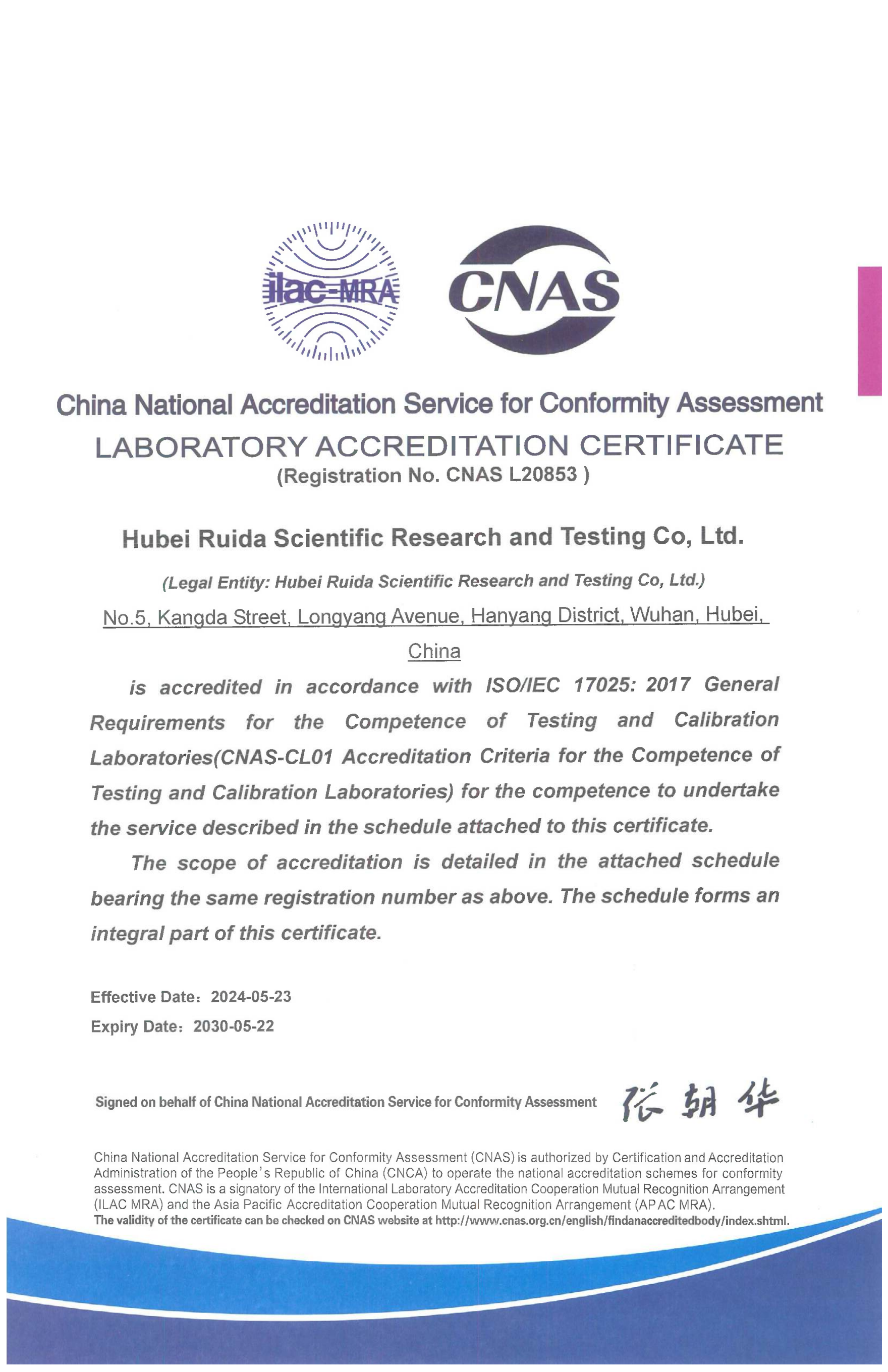 企業榮譽|喜報!湖北路橋瑞達檢測公司榮獲“國家實驗室認可證書”