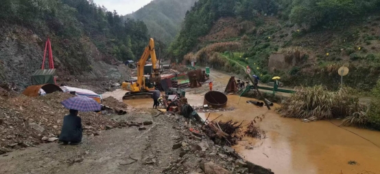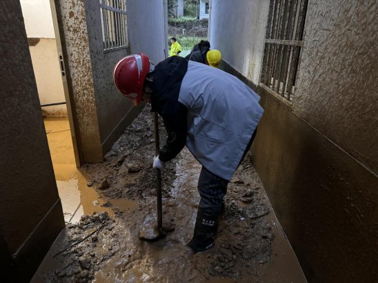 4月以來,安徽省休寧縣氣象臺發(fā)布暴雨紅色預警信號,休寧縣迎來多輪強降雨。湖北路橋德上高速皖贛界段01標六工區(qū)因地勢低洼,部分施工路段出現(xiàn)嚴重積水。項目部附近五城鎮(zhèn)、商山鎮(zhèn)等地降水量驟增,多處出現(xiàn)山體滑坡和泥石流災害,道路被淤泥掩埋寸步難行,大量淤泥涌入居民家中,嚴重威脅當?shù)鼐用裆敭a安全。面對多輪惡劣天氣,湖北路橋德上高速皖贛界段01標項目部迅速啟動抗洪防汛應急預案,多措并舉,全力筑牢抗洪防汛“安全堤壩”。