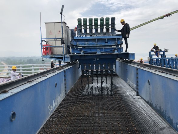 依托丹江口市水都二橋工程,公司研發了超高性能混凝土分倉控制高溫蒸養技術及超高性能混凝土全自動化溫控系統,提高了超高性能混凝土橋面施工質量和施工效率,能夠對養護范圍內各點的溫度實施24小時監控及調整。與傳統施工技術相比,本技術成果可有效縮短工期,提高施工效率,具有顯著的經濟社會效益,推廣應用前景較好。