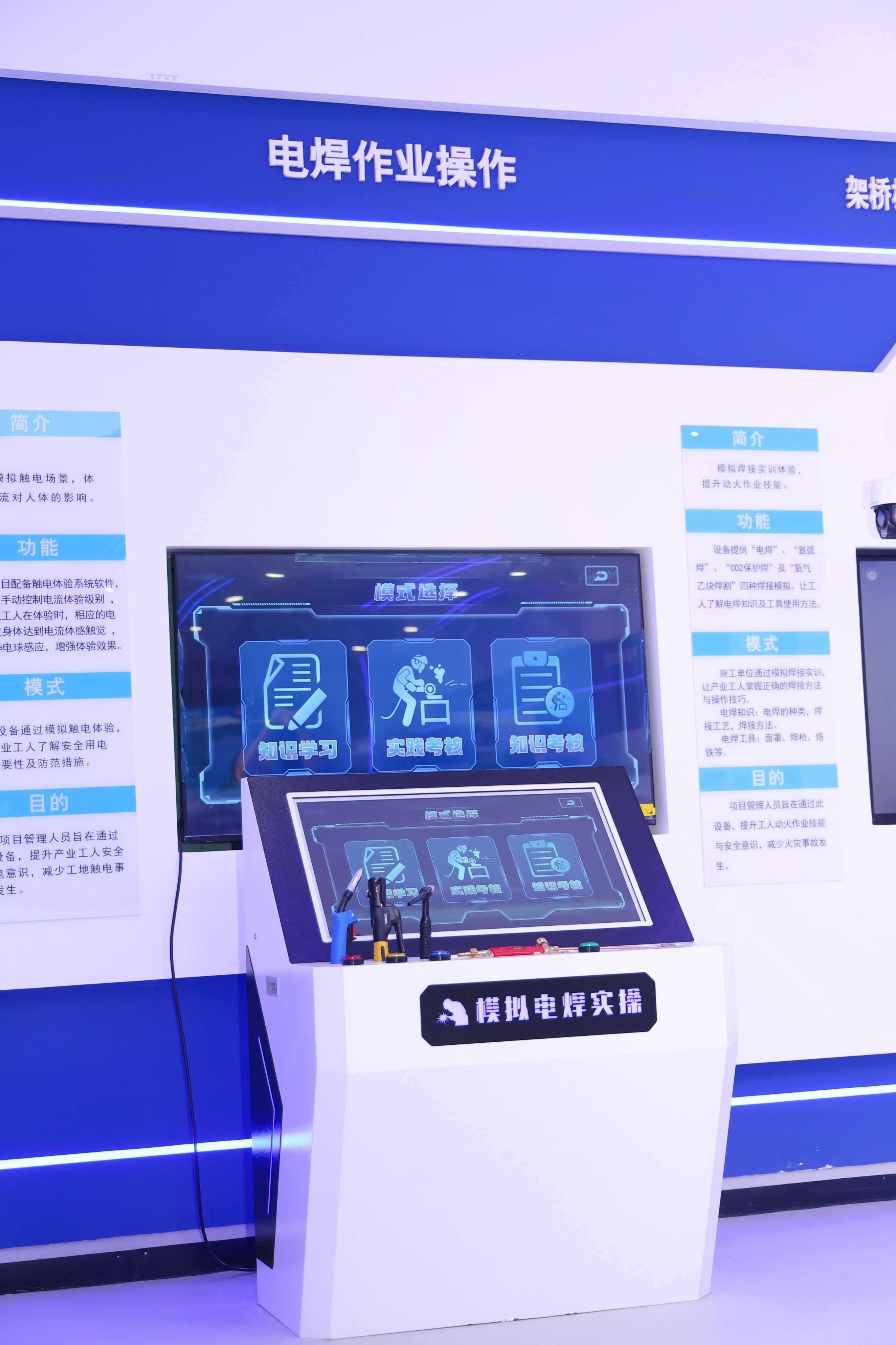 走進智慧館,兼具科技感與實用性的場景令人印象深刻:線上管理平臺實時滾動著工人培訓記錄,線下移動終端可在施工現場隨時開展“微課堂”;在VR虛擬體驗區,工人戴上設備就能“親歷”高空墜落、機械碰撞等高危場景,在痛感與震感中強化安全意識;在綜合用電體驗區,真實電流通過模擬裝置產生的酥麻感,讓安全用電從理論變成了切身體會。